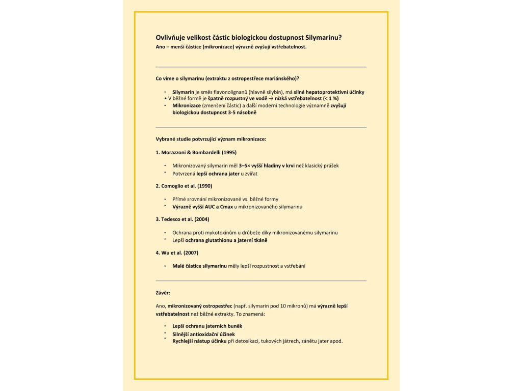 250 mg Extrakt ze semen rostliny ostropestřce mariánského (standardizovaný na 80 % silymarinového komplexu), 10 mg vitamin D3 (cholekalciferol)