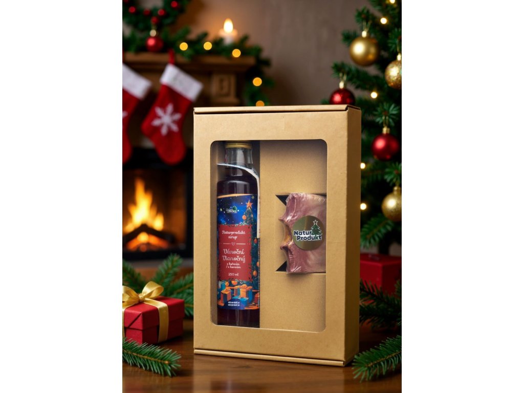 Provoněná limitovaná sváteční edice vánoční kolekce obsahuje Naturprodukt sirup Vánoční PF 2026 + Vánoční mýdlo.