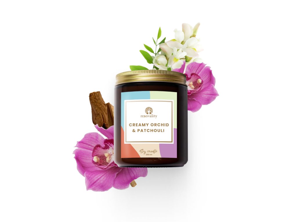 Renovality Creamy Orchid & Patchouli – sójová svíčka 250 ml