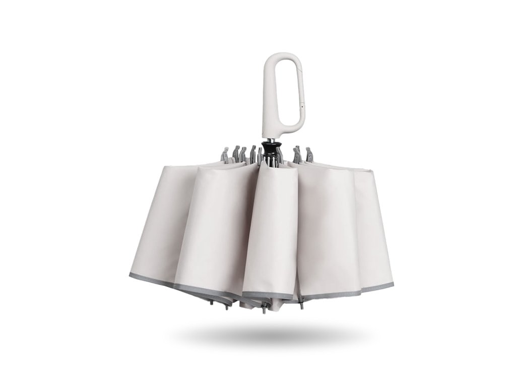 Deštník s inovativním držákem ve tvaru karabiny a dvojitou odolností proti větru