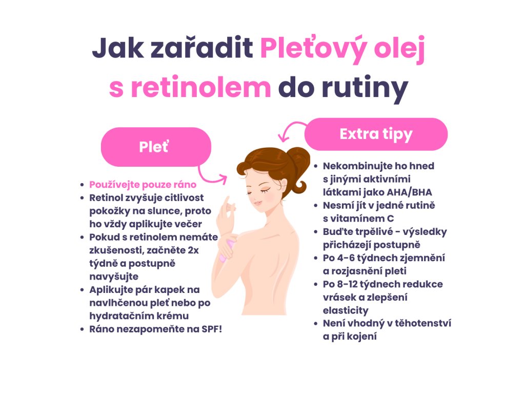 Určen pouze k vnějšímu použití! Retinol by se neměl používat v těhotenství a při kojení. Skladujte na suchém a tmavém místě při pokojové teplotě. Po otevření spotřebujte do 3 měsíců.