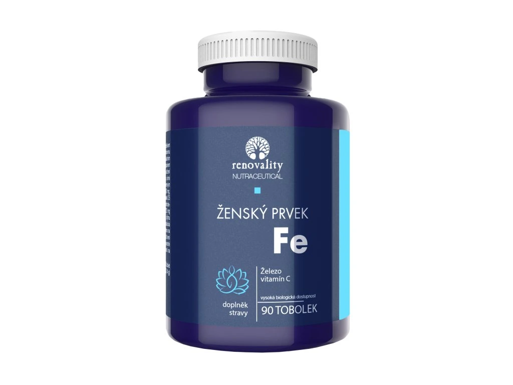 Železo s vitamínem C Acerolou – ženský prvek Fe. Železo chelát obsahuje železo ve formě bisglycinátu železnatého. Vyznačuje se vysokou biologickou dostupností bez vedlejších účinků. Jiné formy doplňování železa jsou často doprovázeny nevolností nebo zácpou. Železo je velice důležitý prvek pro tvorbu červených krvinek a červeného krevního barviva. Hemoglobin zajišťuje okysličování organizmu a tím i jeho odolnost a výkonnost. Železo přispívá také ke snížení míry únavy a vyčerpání.