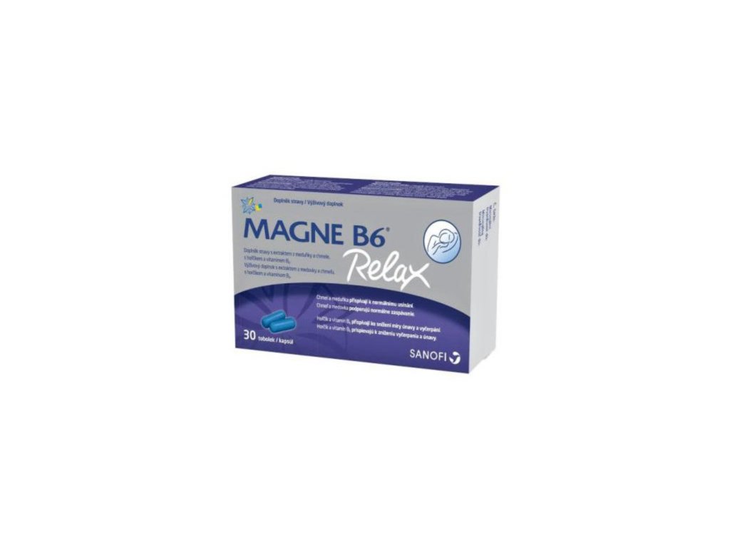 Navození prospěšného spánku má zásadní význam pro zdraví a životní rovnováhu. Magne B6 Relax obsahuje chmel a meduňku, které přispívají ke zmírnění psychického stresu a k normálnímu usínání. Složky hořčík a vitamín B6 přispívají k normální psychické a nervové činnosti, ke snížení míry únavy a vyčerpání.