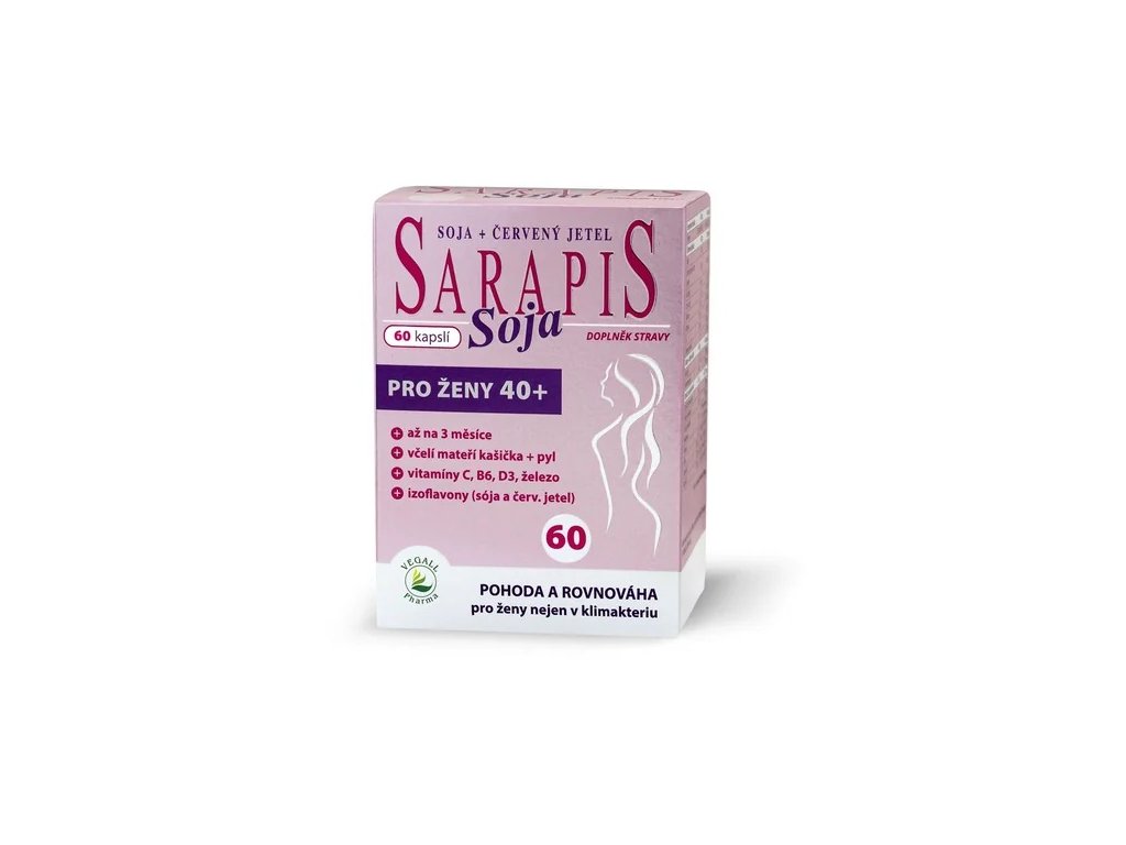 Sarapis Soja je obohacena o fytoestrogeny ze sóji a červeného jetele zajišťující komplexní spektrum účinků v období klimakteria, které doprovázejí nepříjemné příznaky (např. návaly horka a potu, bušení srdce, migrény).