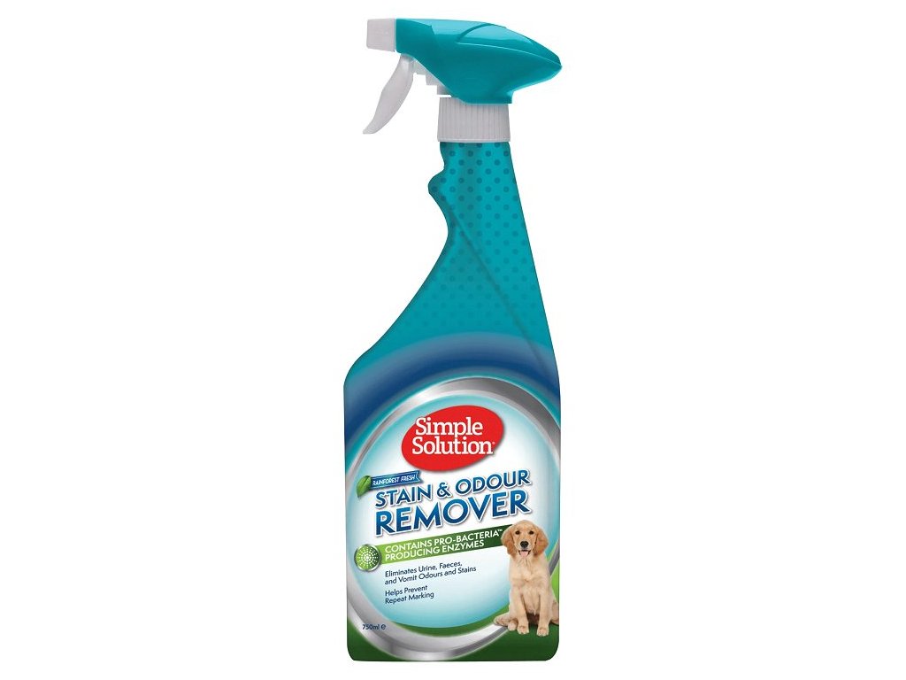 Odolné pachy a skvrny od domácích zvířat vyžadují silný čisticí prostředek. Simple Solution Stain & Odor Remover má ve svém složení Pro-Bacterie™ a enzymy, které odstraňují skvrny a pachy, čímž zároveň zabraňuje opakovanému značkování. Pomůže Vám odstranit moč, výkaly, zvratky a další nečistoty z koberců, čalounění, lůžkovin, látkových hraček, oblečení a dalších voděodolných povrchů. Je účinný jak při kartáčování koberců, tak i při předčištění prádla v pračce.