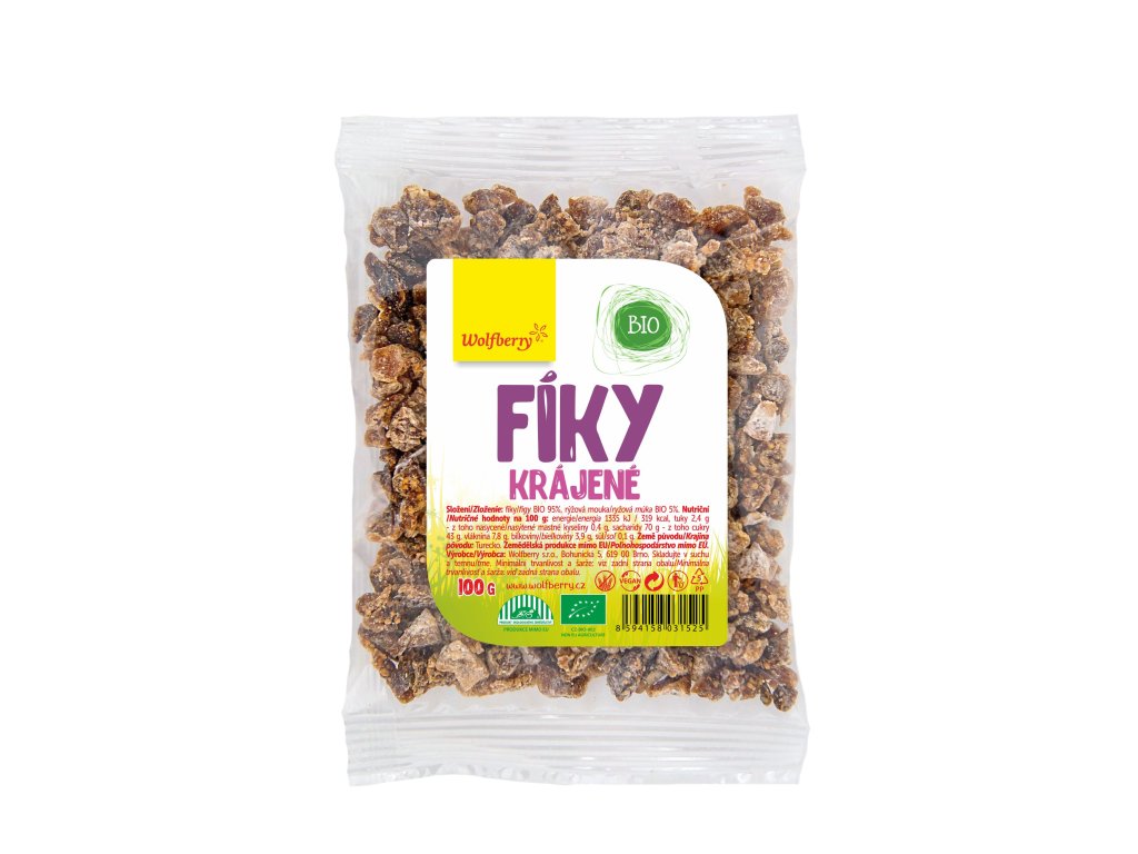 Wolfberry krájené fíky mají neuvěřitelné aroma, které vás okouzlí již při otevření obalu. Jsou vhodné k přímé konzumaci, ale i do domácího müsli, na dochucení cereálních kaší a dezertů, do pečiva, nebo na vaření. Fíky jsou nakrájené na malé kostičky a poté šetrně sušené na slunci. Jedná se o nesířený produkt ekologického zemědělství v BIO kvalitě.