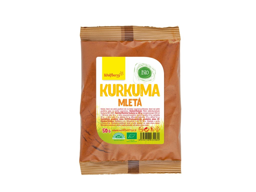 Kurkuma mletá Wolfberry BIO v BIO kvalitě. Koření s klasicky žlutou barvou a zemitou, mírně nahořklou a pepřovitou chutí.