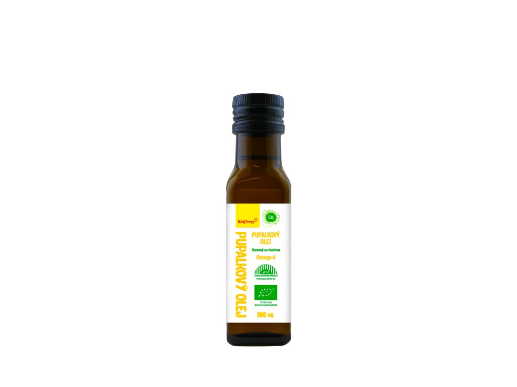 Pupalkový olej BIO 100 ml Wolfberry lisovaný za studena ze zralých semen pupalky dvouleté. Je určený pro vnitřní použití, ale i pro kosmetické účely. Je ceněný pro vysoký obsah nenasycených mastných kyselin.