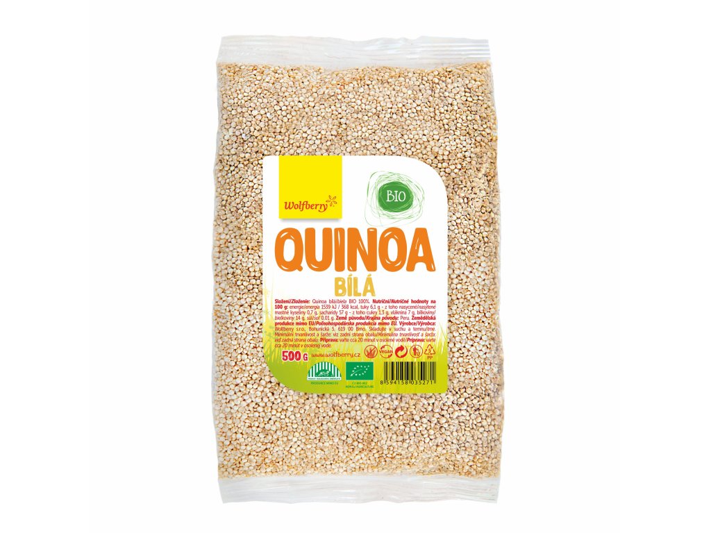 Wolfberry BIO Quinoa je v BIO kvalitě. Vaří se podobně jako rýže v poměru 1:2 dílům vody. Asi po 15 minutách získáte výbornou základní surovinu lehce oříškové chuti a mírně křupavé struktury. Tu můžete používat buď jako přílohu k pokrmům, zavářku do polévek, nebo ji přimíchat k salátům, zapéct spolu se zeleninou, udělat z ní “karbenátky“ – vaší fantazii se meze nekladou.