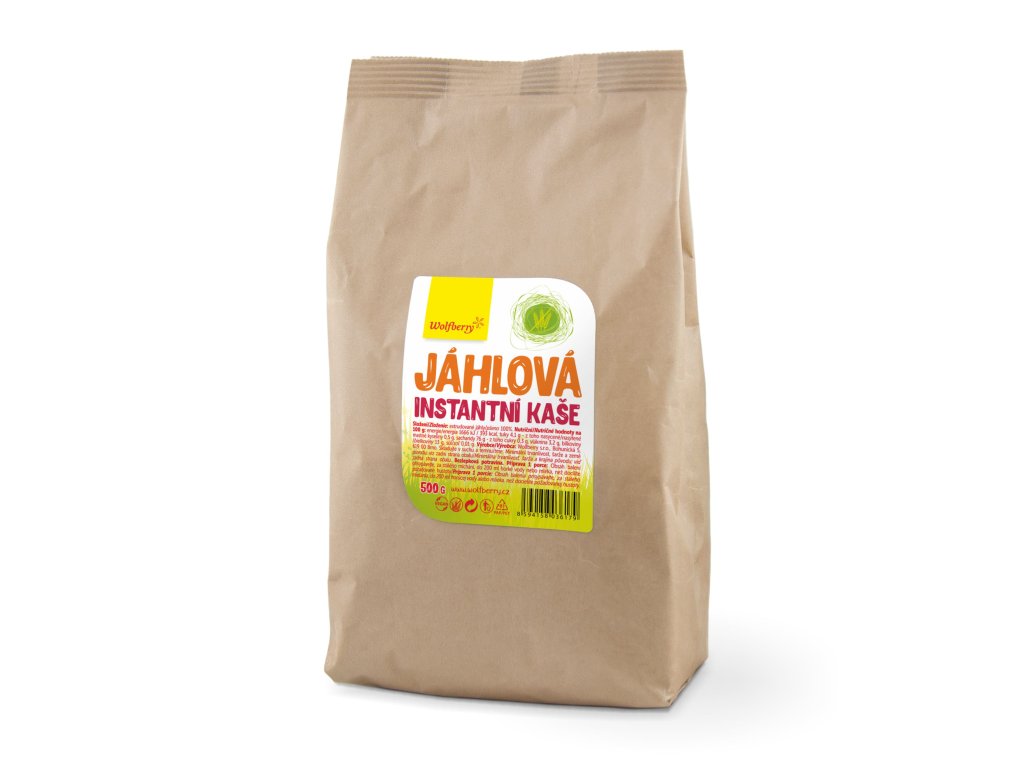 Jáhlová kaše Wolfberry 500 g. Instantní neochucená kaše, lehce stravitelná, rychle a snadno připravená, vyrobena z přirozeně bezlepkových surovin.