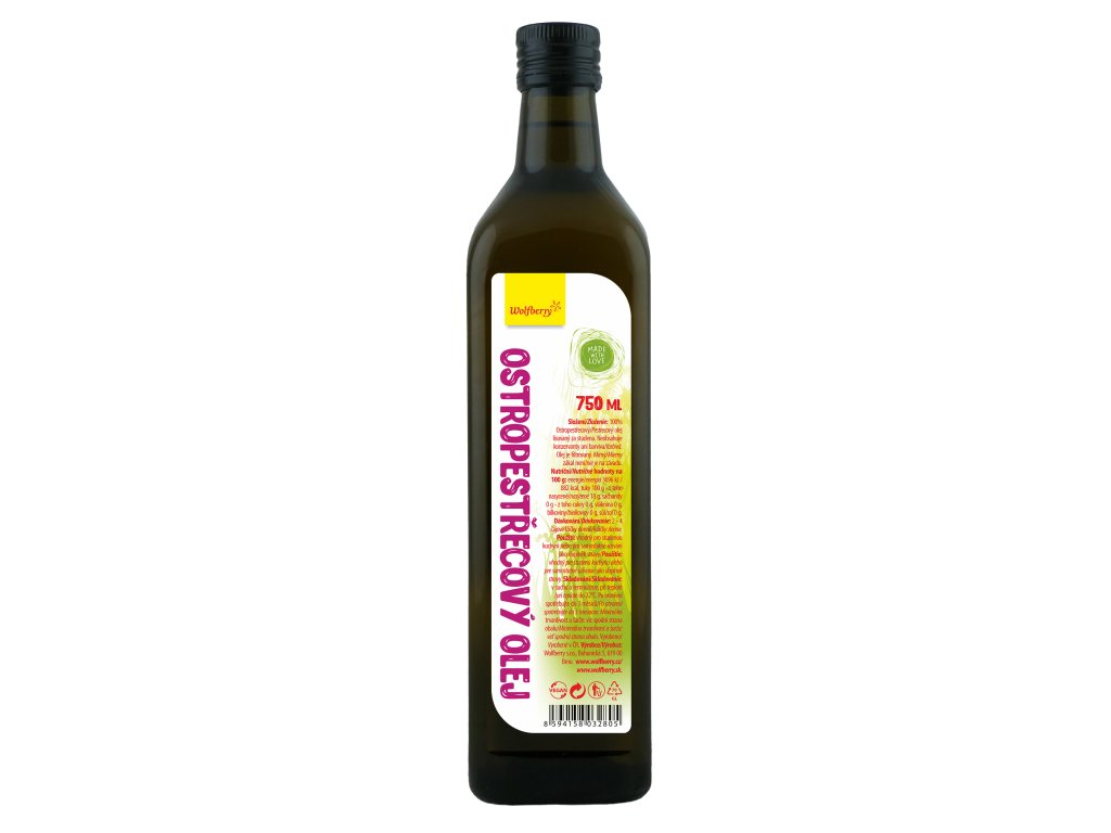 Ostropestřecový olej Wolfberry 750 ml v RAW kvalitě. 100% panenský olej jednodruhový, lisovaný za studena. Vyrobeno ze semen ostropestřce mariánského.