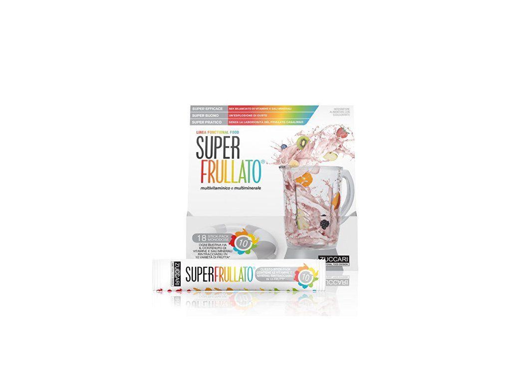 Přípravek Super Frullato obsahuje směs 12 vitamínů a 10 minerálů z ovoce.